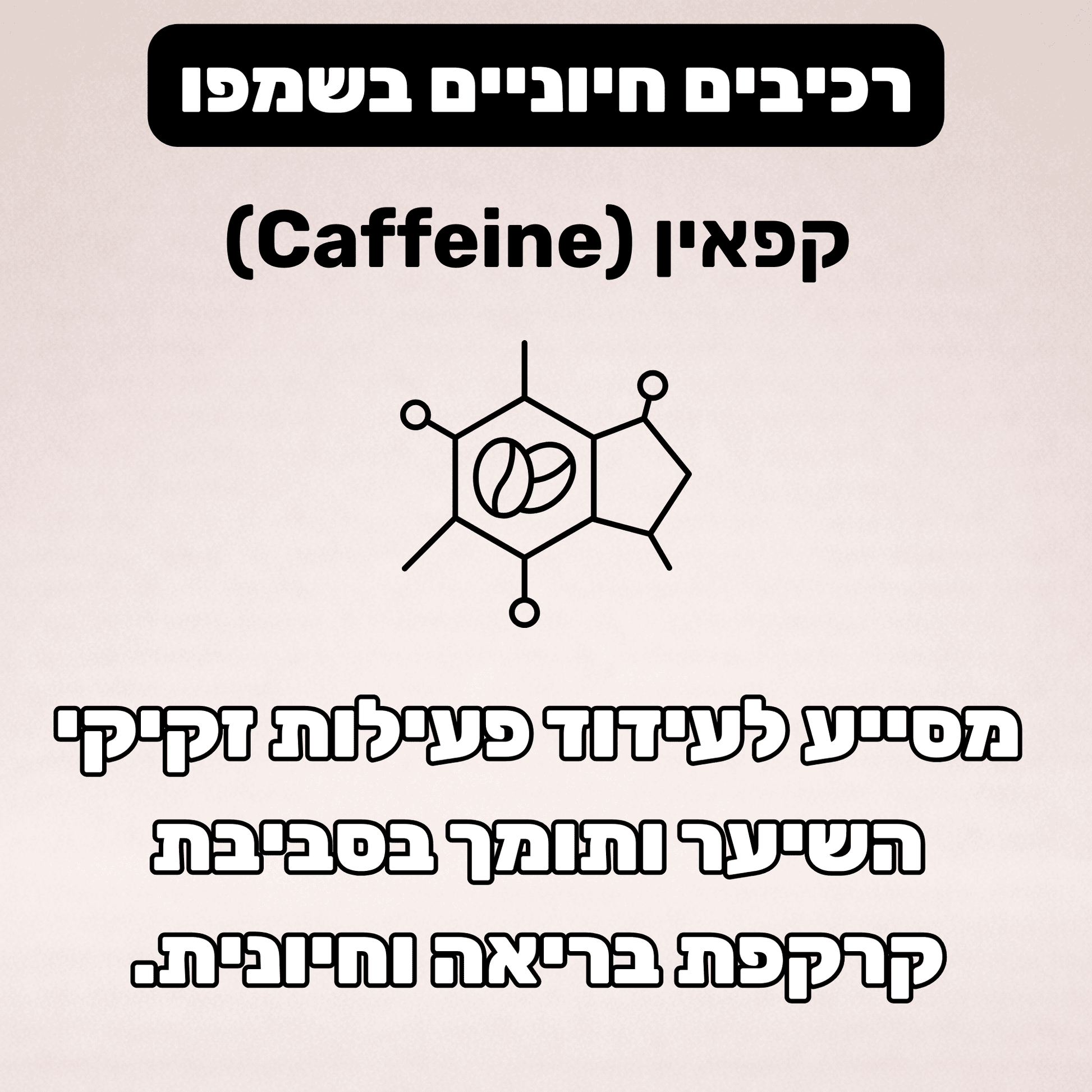 קפאין: מעורר את הקרקפת ותומך בפעילות זקיקי השיער. עשוי לסייע בתחושת חיזוק ולהפחית השפעות שמחלישות זקיקים לאורך זמן.